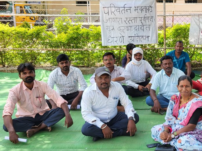 सिरोंचा-आलापल्ली राष्ट्रीय महामार्ग ते परिवर्तन भवनाकडे जाणारा मुख्य रस्त्यापासून काही अंतरावर खड्डा खोदण्यात आल्याने सदर रस्ता बंद झाला आहे. यामुळे या वार्डातील रहिवासींसह विद्यार्थ्यांना ये-जा करतांना अनेक समस्यांना तोंड द्यावे लागत आहे. सदर रस्ताच्या दुरुस्तीबाबत अनेकदा तक्रार करुनही संबंधित विभागाने कानाडोळा केल्याने रस्ता दुरुस्त करुन मार्ग प्रशस्त करण्याच्या मागणीला घेऊन परिवर्तन भवन परिसरातील रहिवासीयांनी गुरुवार, (दि.9) पासून तहसिल कार्यालयासमोर धरणे आंदोलन पुकारले आहे.