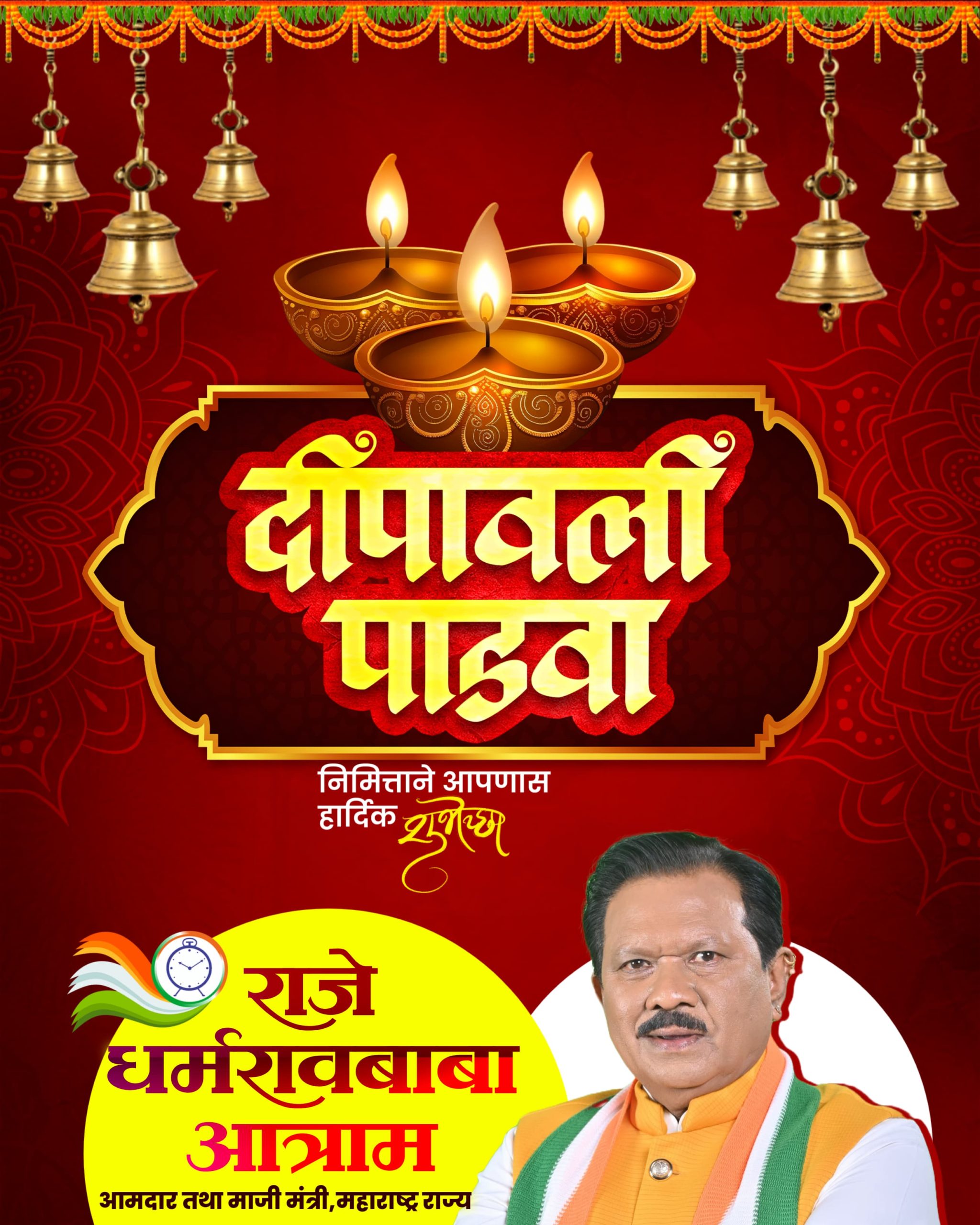 News Update अहेरी विधानसभा क्षेत्राचे लोकप्रिय आमदार तथा माजी कॅबिनेट मंत्री मा.डॉ.धर्मराव बाबा आत्राम यांच्या कडून अहेरी विधानसभा क्षेत्रातील समस्त जनतेस दीपावलीच्या हार्दिक शुभेच्छा. By TIRUPATI CHITYALA (MCJ) - October 22, 2025 63 Share WhatsAppFacebookTwitterTelegram