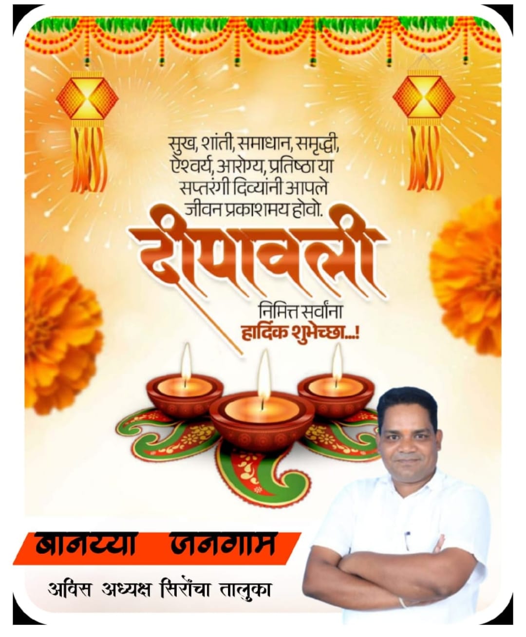 News Update सिरोंचा तालुक्यातील समस्त नागरिकांना दीपावलीच्या हार्दिक शुभेच्छा शुभेच्छुक -श्री बानय्या जनगाम अध्यक्ष – अविसं सिरोंचा तालुका By TIRUPATI CHITYALA (MCJ) - October 22, 2025 78 Share WhatsAppFacebookTwitterTelegram