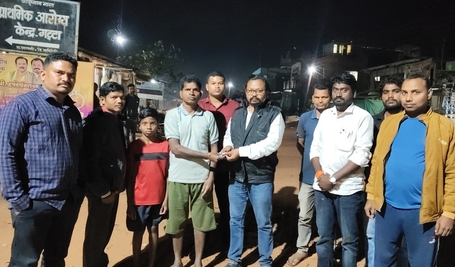एटापल्ली (प्रतिनिधी) तालुक्यातील झारेवाडा गावातील बाजू हिचामी हे कॅन्सर या जीवघेण्या आजाराशी जीव तोडून लढा देत आहेत. उपचारासाठी लागणारा प्रचंड खर्च पाहता कुटुंबावर मोठे आर्थिक संकट आले होते. ही गंभीर परिस्थिती समजताच युवा नेते हर्षवर्धन बाबा आत्राम यांनी सामाजिक बांधिलकी जपत पुढाकार घेतला आणि स्वतः आर्थिक मदत करून हिचामी कुटुंबाला मोठा आधार दिला.