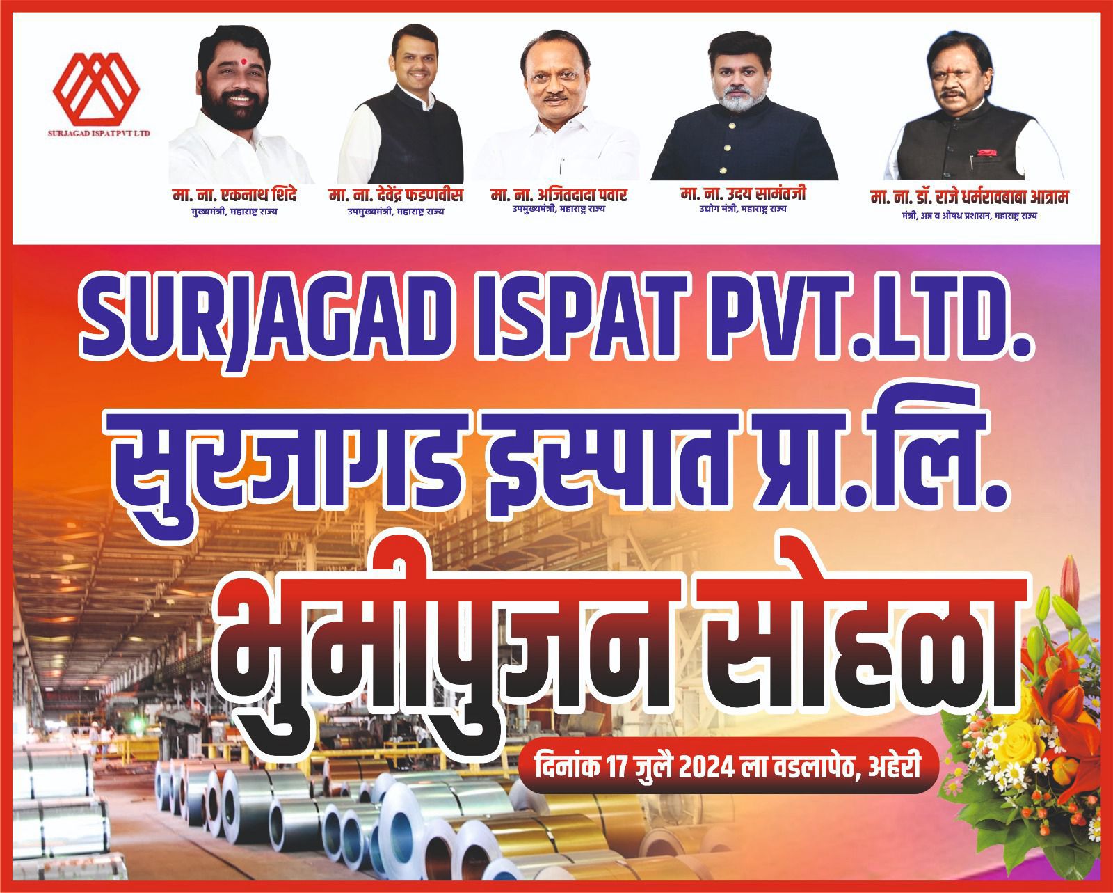 विदर्भातील औद्योगिक विकासाच्या दिशेने महत्त्वपूर्ण वाटचाल करताना, महाराष्ट्राचे उपमुख्यमंत्री आणि गृहमंत्री देवेंद्र फडणवीस यांच्या हस्ते १७ जुलै रोजी गडचिरोली येथील सूरजगड इस्पात प्रायव्हेट लिमिटेड स्टील प्रकल्पाचे भूमिपूजन होणार आहे. हा महत्त्वाकांक्षी उपक्रम, 10,000 कोटी, असून ह्या प्रकल्पामुळे प्रत्येक्ष व अप्रत्यक्षरीत्या 7,000 पेक्षा जास्त जिल्ह्यातील स्थानिकांना रोजगार निर्माण करणे अपेक्षित आहे.