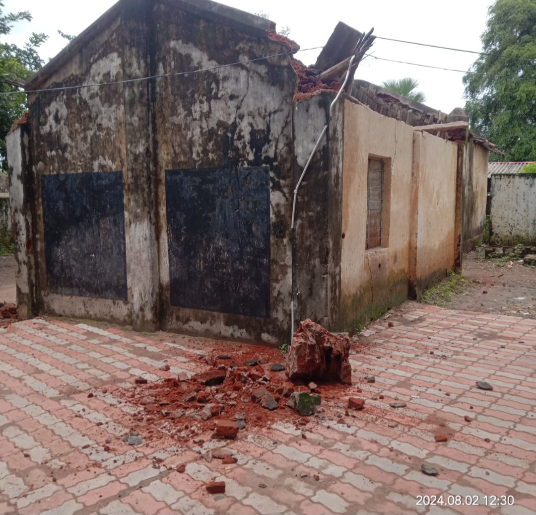 तालुक्यात झालेल्या अतिवृष्टीमुळे शेत पिकांच्या नुकसानीसह अनेक घरांची पडझड झाली आहे. अशातच तालुक्यातील सूर्यरावपल्ली येथील जिल्हा परिषद प्राथमिक शाळा आवारात असलेल्या जीर्ण अवस्थेतील अंगणवाडी इमारतीचा काही भाग कोसळला गेला. सुदैवाने यावेळी अंगणवाडी कुणीही नसल्याने अनूचित प्रकार टळला. त्यामुळे अंगणवाडीसह शाळेची इमारत निर्लेखित करण्याची मागणी ग्रामस्थांकडून होत आहे.