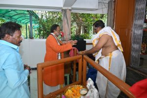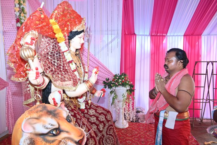 अहेरी(प्रतिनिधी )सोमवारपासून नवरात्रोत्सवाला सुरुवात झाली आहे. ठिकठिकाणी माँ दुर्गेची स्थापना करण्यात आल्याने सर्वत्र भिक्तिमय वातावरण निर्माण झाले आहे. राजनगरी अहेरी येथील राजवाड्यातही दरवर्षीप्रमाणे माँ दुर्गा मातेची स्थापना करण्यात आली. माजी राज्यमंत्री तथा विद्यमान आमदार धर्मरावबाबा आत्राम व हर्षवर्धन बाबा आत्राम यांनी विधिवत पूजा अर्चना करीत अहेरी विधानसभा क्षेत्रासह जिल्हाभरातील सर्वसामान्यांना सुखसमृद्धी लाभू दे, असे साकडे माँ दुर्गेकडे घातले.