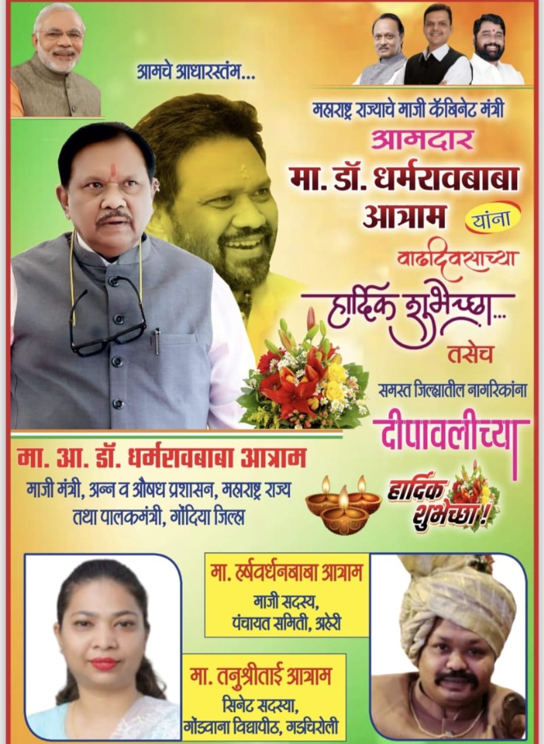 महाराष्ट्र राज्याचे माजी कॅबिनेट मंत्री *आमदार* मा. डॉ. धर्मराव बाबा आत्राम यांना वाढदिवसाच्या हार्दिक शुभेच्छा तसेच जिल्ह्यातील समस्त नागरिकांना दीपावलीच्या हार्दिक शुभेच्छा