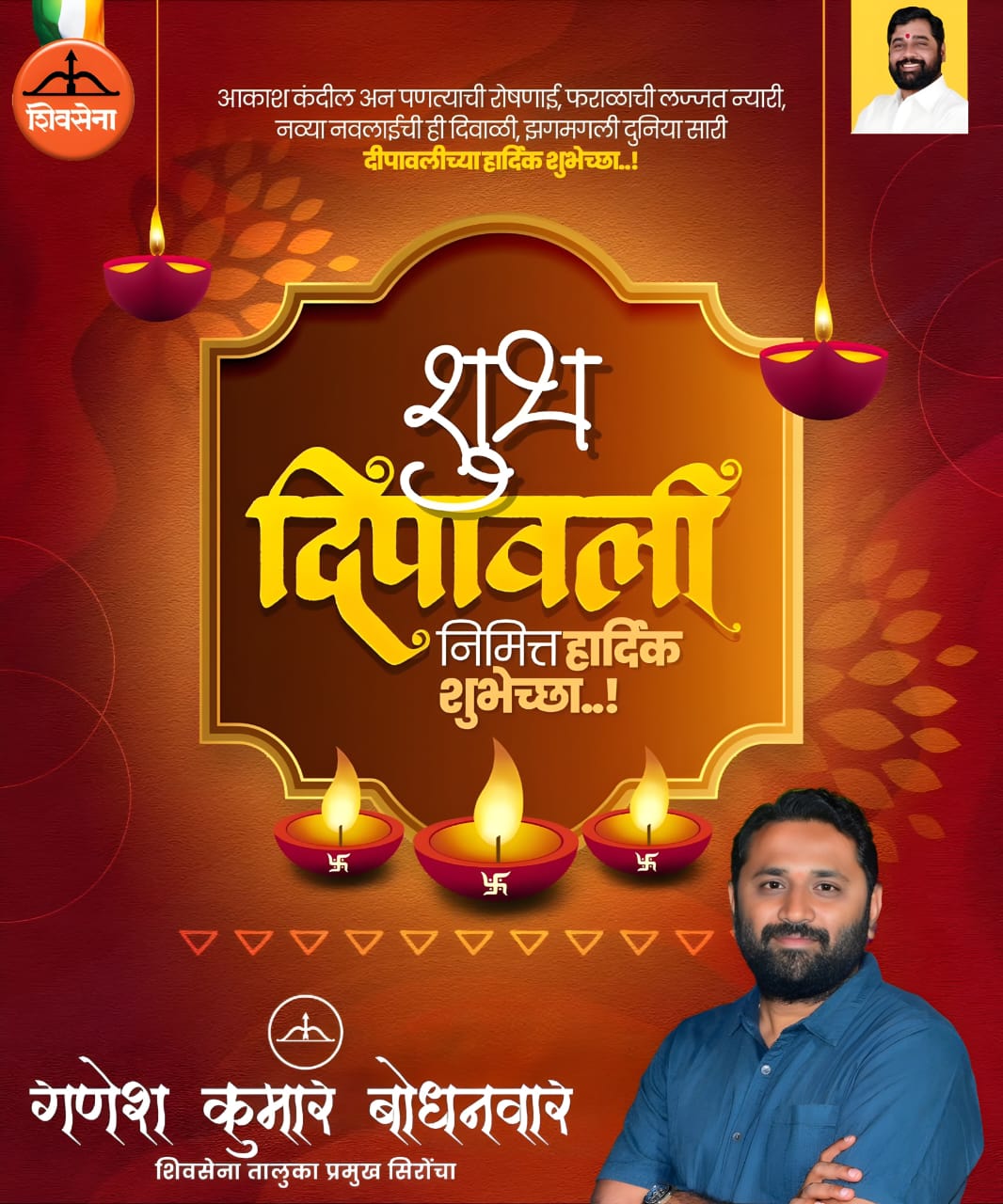 Political सिरोंचा तालुक्यातील सर्व जनतेस दिवाळीच्या हार्दिक शुभेच्छा शुभेच्छुक – गणेश कुमार बोधनवार शिवसेना तालुका प्रमुख सिरोंचा By TIRUPATI CHITYALA (MCJ) - October 22, 2025 89 Share WhatsAppFacebookTwitterTelegram