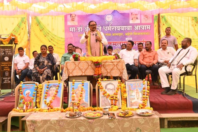 अहेरी विधानसभा क्षेत्राचे आमदार डॉ. धर्मरावबाबा आत्राम यांनी आज कमलापूर परिसराचा दौरा करून विविध महत्त्वपूर्ण विकासकामांचे भूमिपूजन केले. यावेळी आयोजित जाहीर सभेला संबोधित करताना, “क्षेत्राचा सर्वांगीण विकास हेच माझे ध्येय असून, नागरिकांच्या कल्याणासाठी जास्तीत जास्त निधी उपलब्ध करून देण्यास मी कटिबद्ध आहे,” असे आश्वासन त्यांनी दिले.