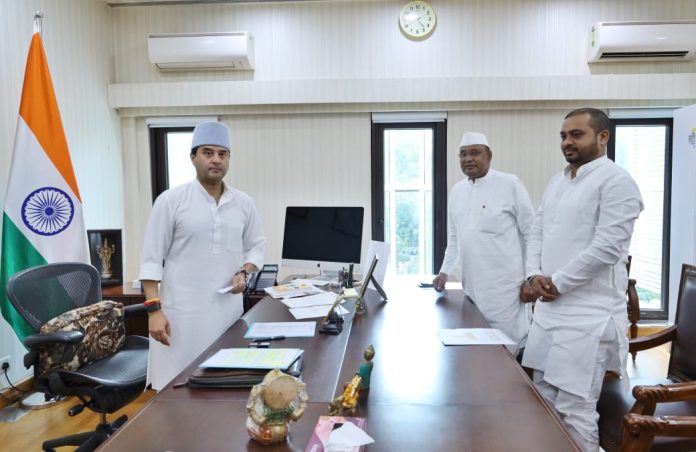 गडचिरोली(प्रतिनिधी )खासदार डॉ. नामदेव किरसान यांनी केंद्रीय दूरसंचार मंत्री ज्योतीरादित्य सिंधिया यांची दिल्ली इथे भेट घेतली. त्यावेळी सोबत गडचिरोली जिल्हा काँग्रेस कमिटी चे अध्यक्ष महेंद्र ब्राह्मणवाडे सुद्धा उपस्थित होते.